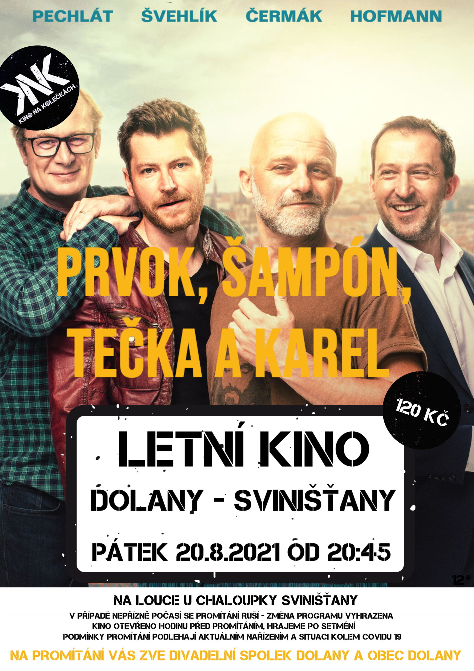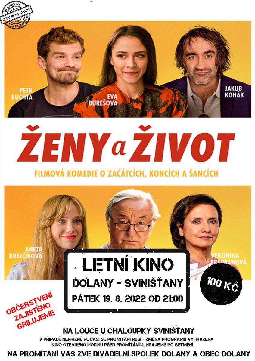 Vážení diváci, putovní letní Kino na kolečkách letos zavítá do Svinišťan a Vy jste zváni do kina pod širým nebem, které uvede novou českou komedii. Občerstvení zajištěno. Kino otevřeno hodinu před promítáním – hrajeme po setmění. -