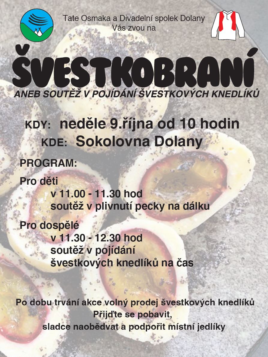 Po dobu trvání akce volný prodej švestkových knedlíků. Přijďte se pobavit, sladce naobědvat a podpořit místní jedlíky 🙂 -